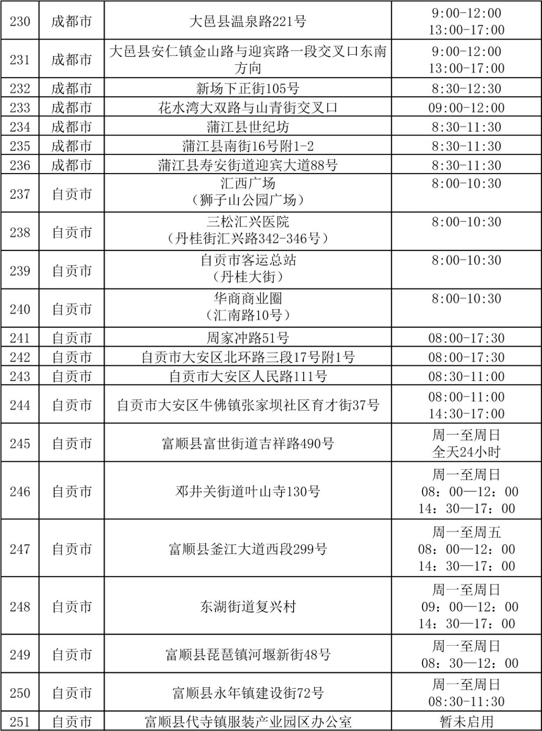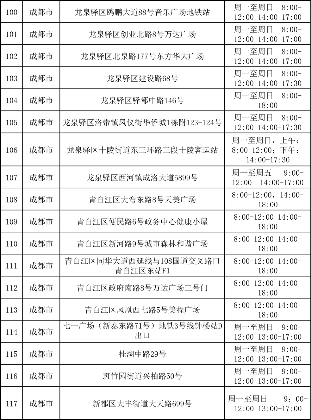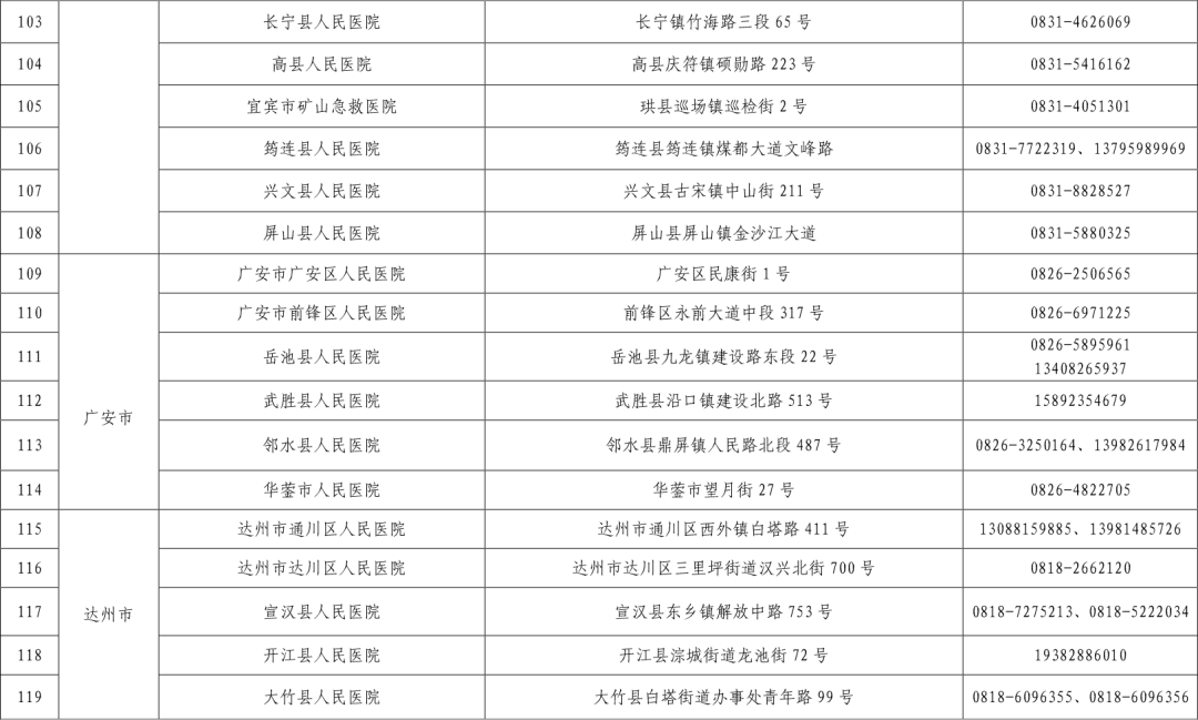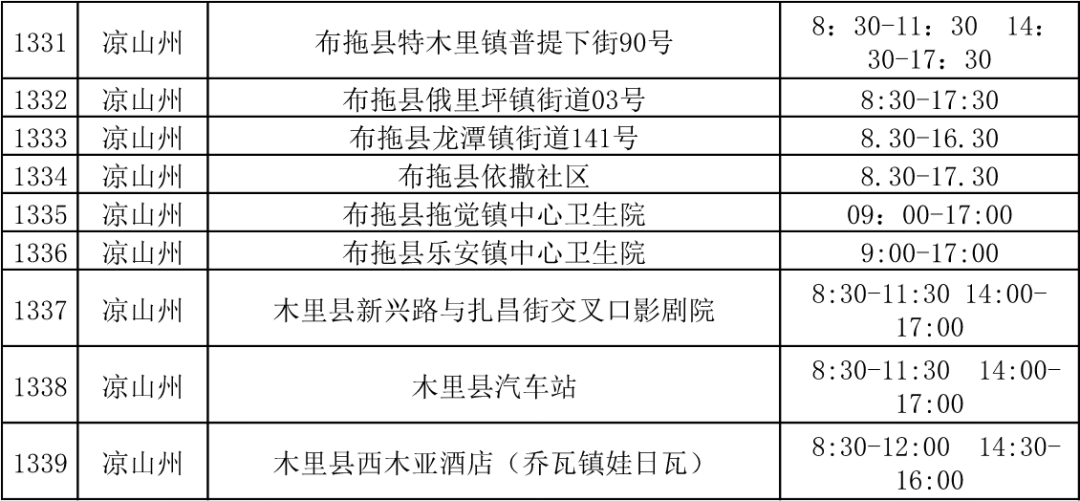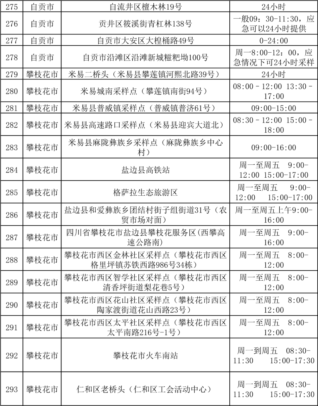 四川省各市(州)便民核酸采样点设置情况一览表