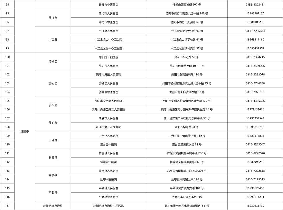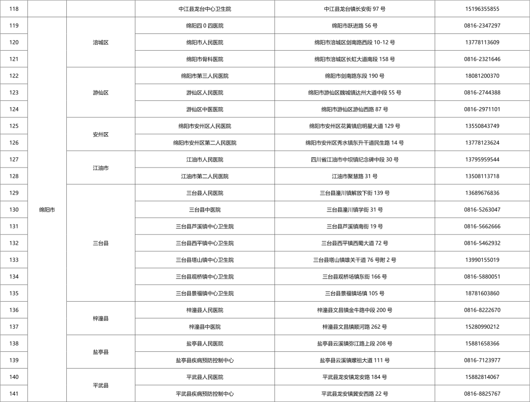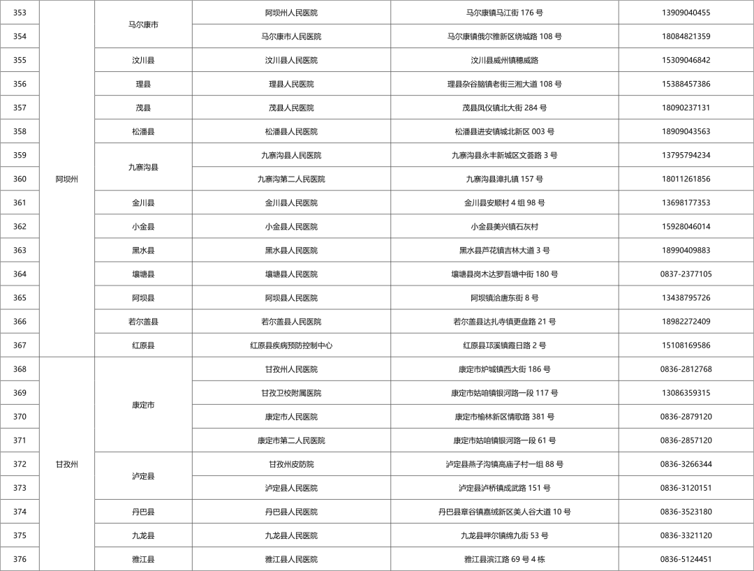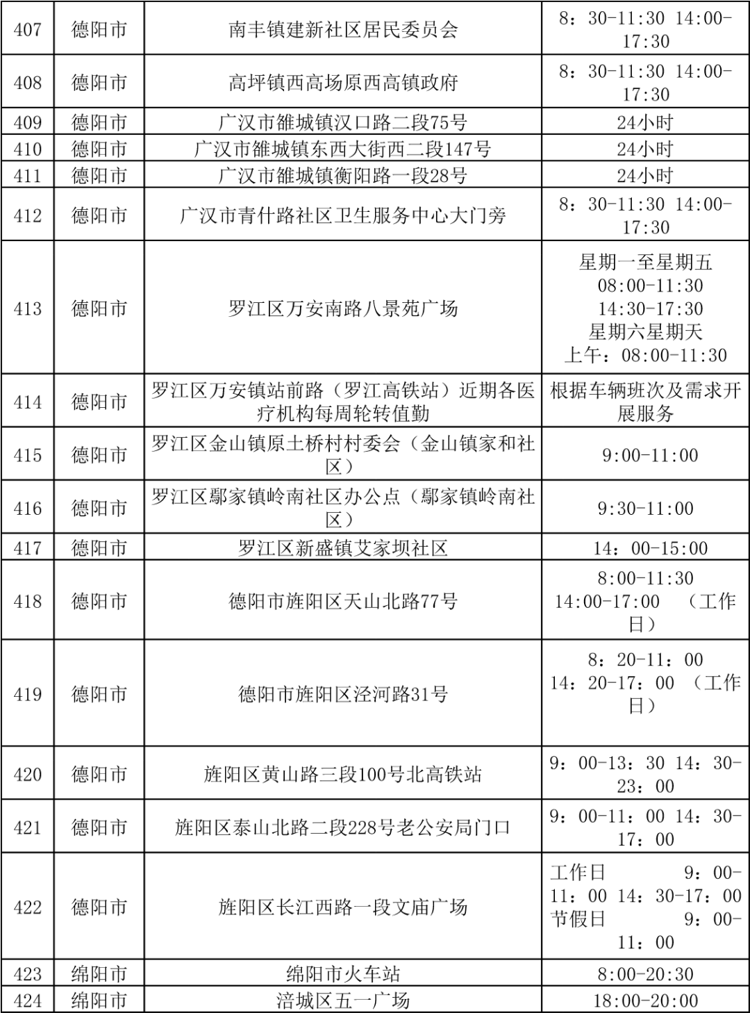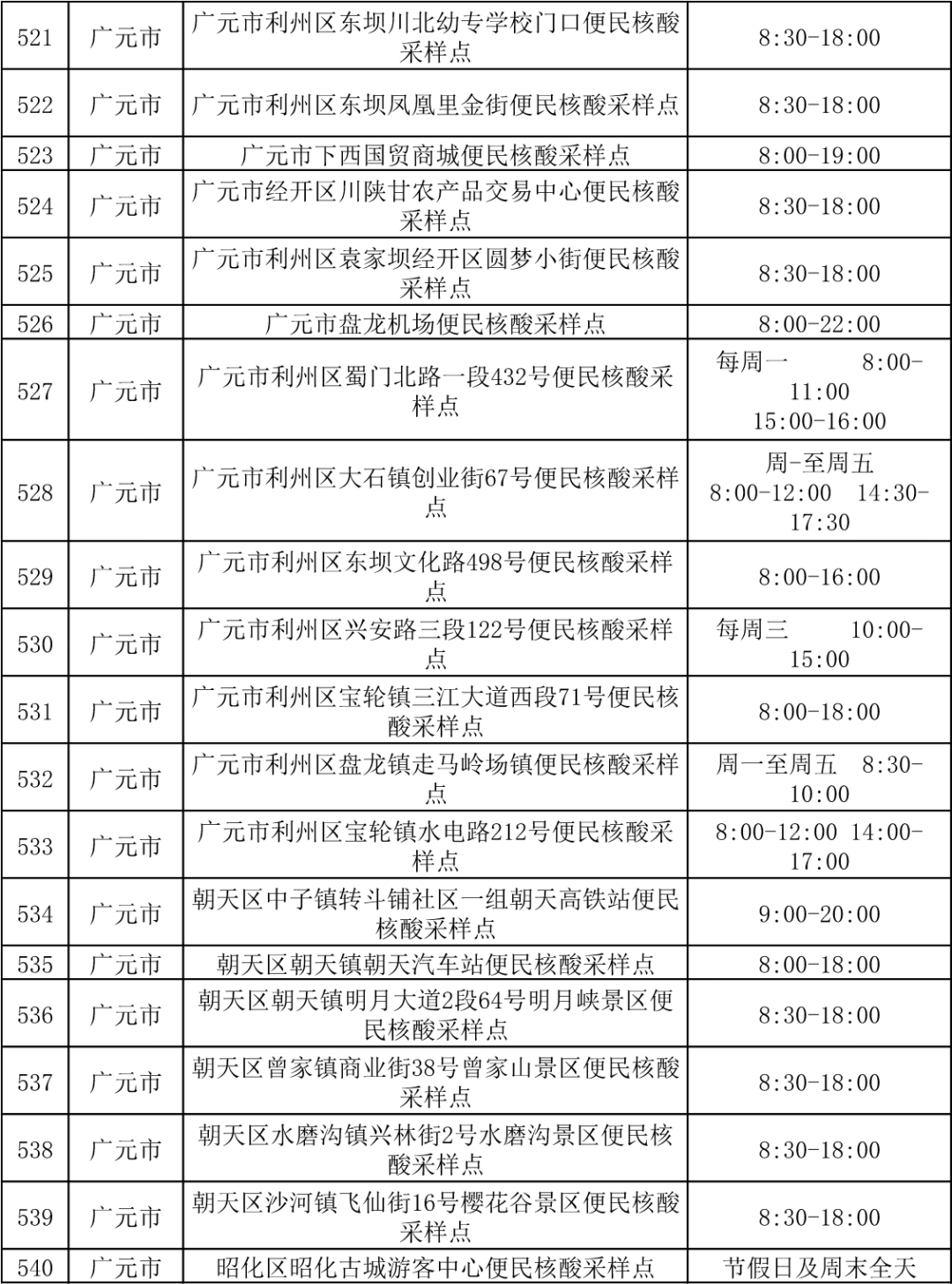 四川省各市(州)便民核酸采样点设置情况一览表