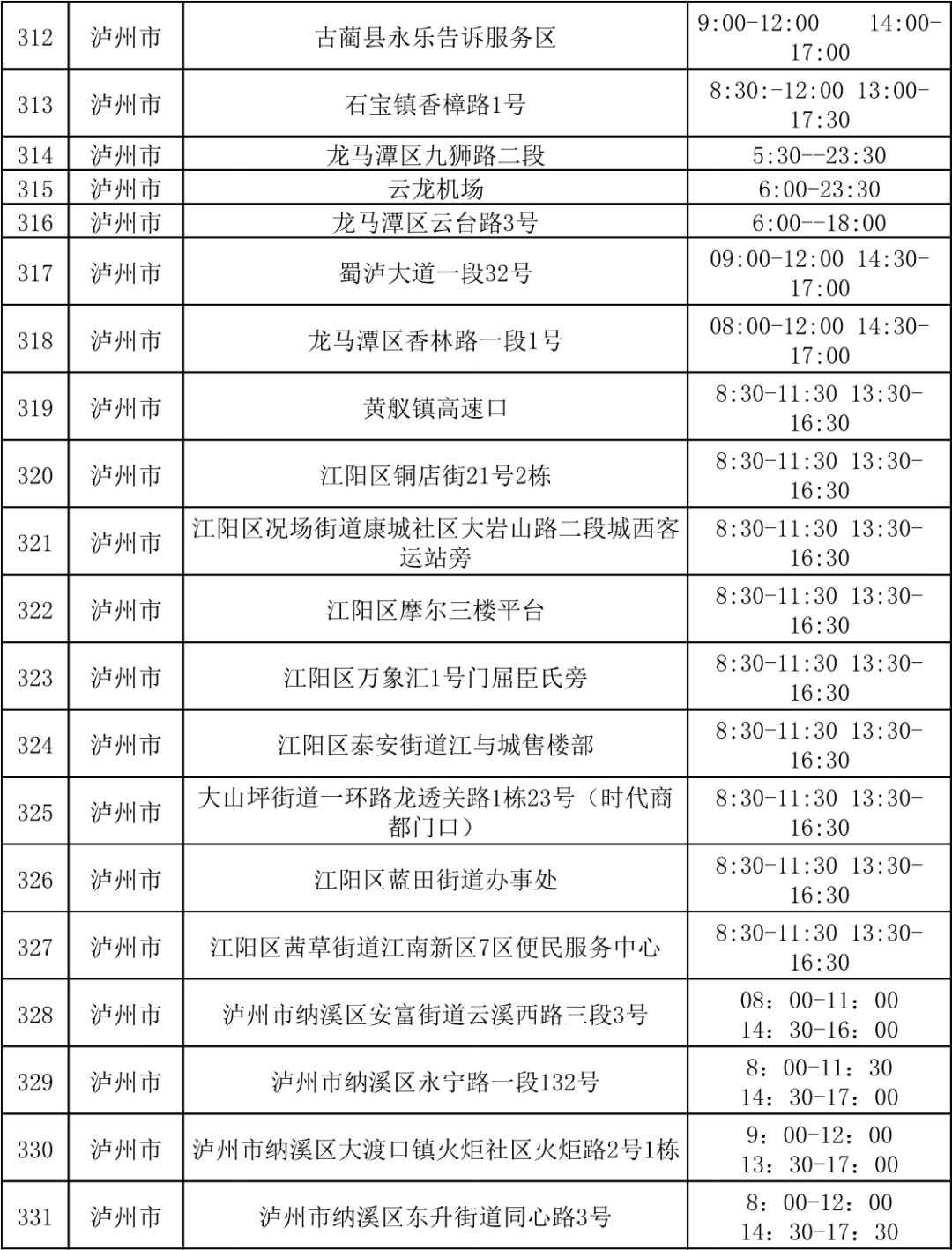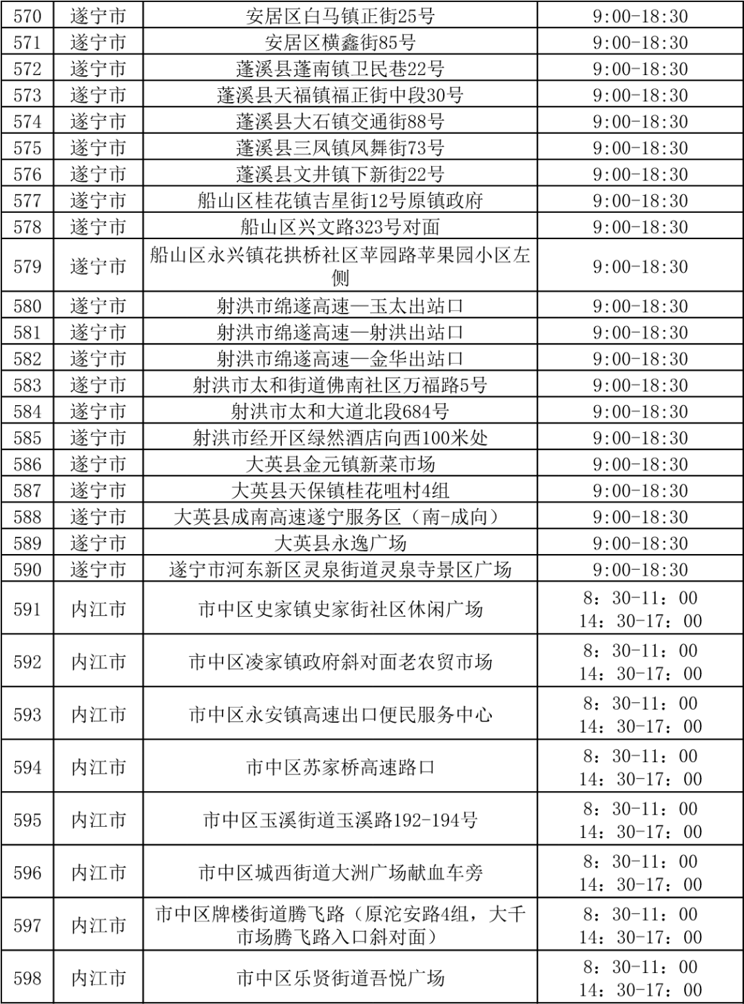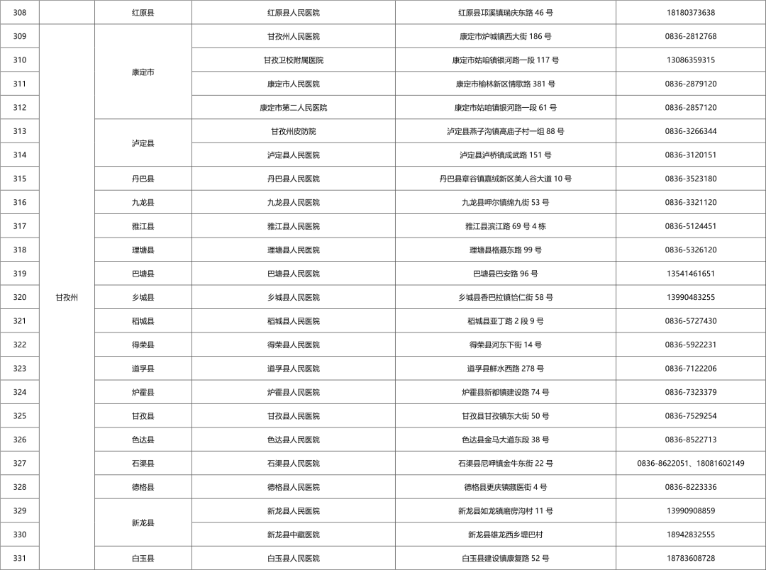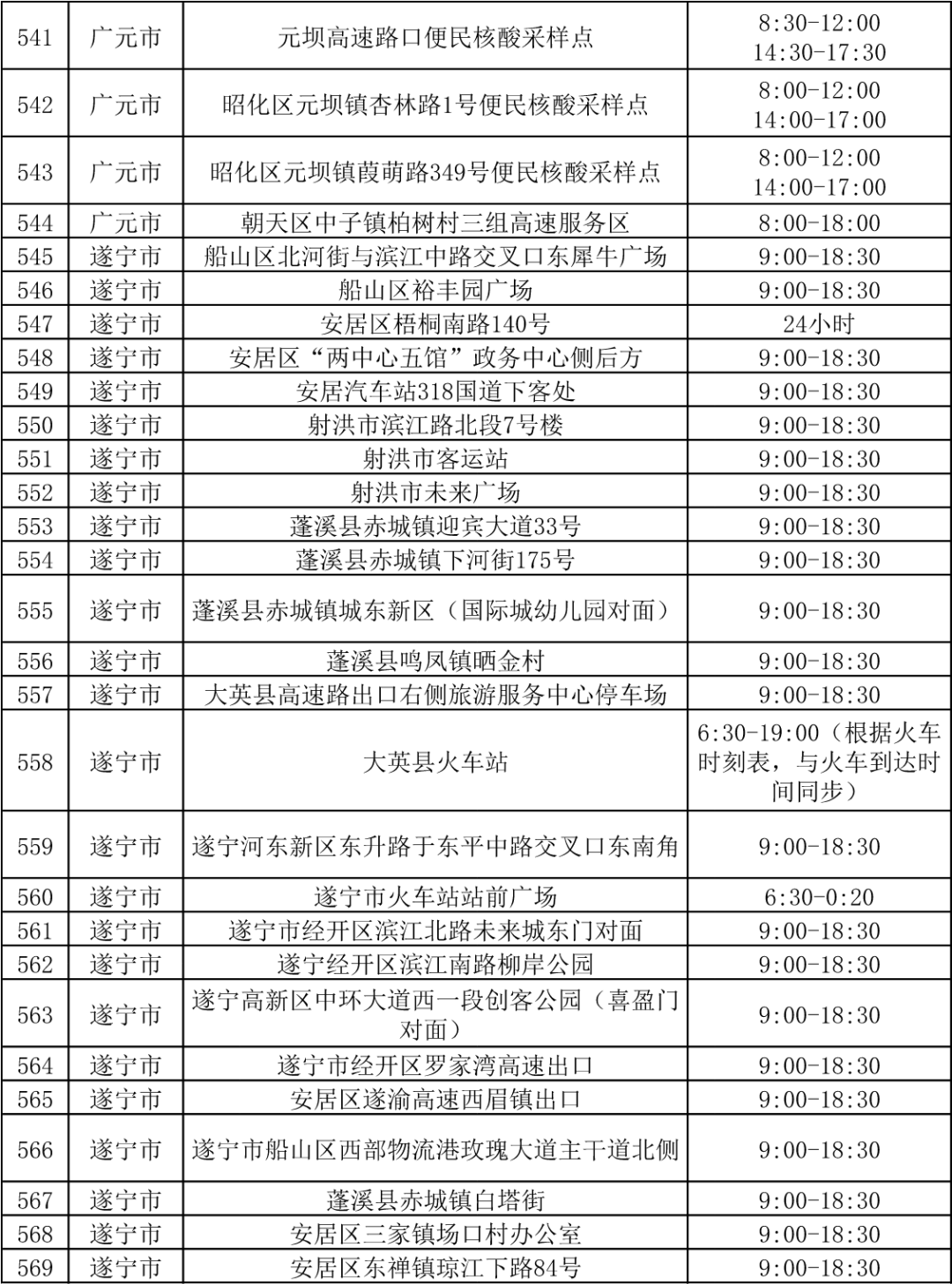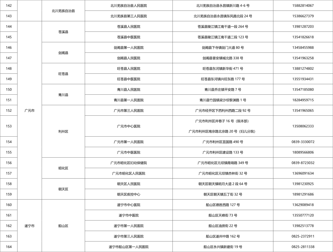 四川省各市(州)便民核酸采样点设置情况一览表