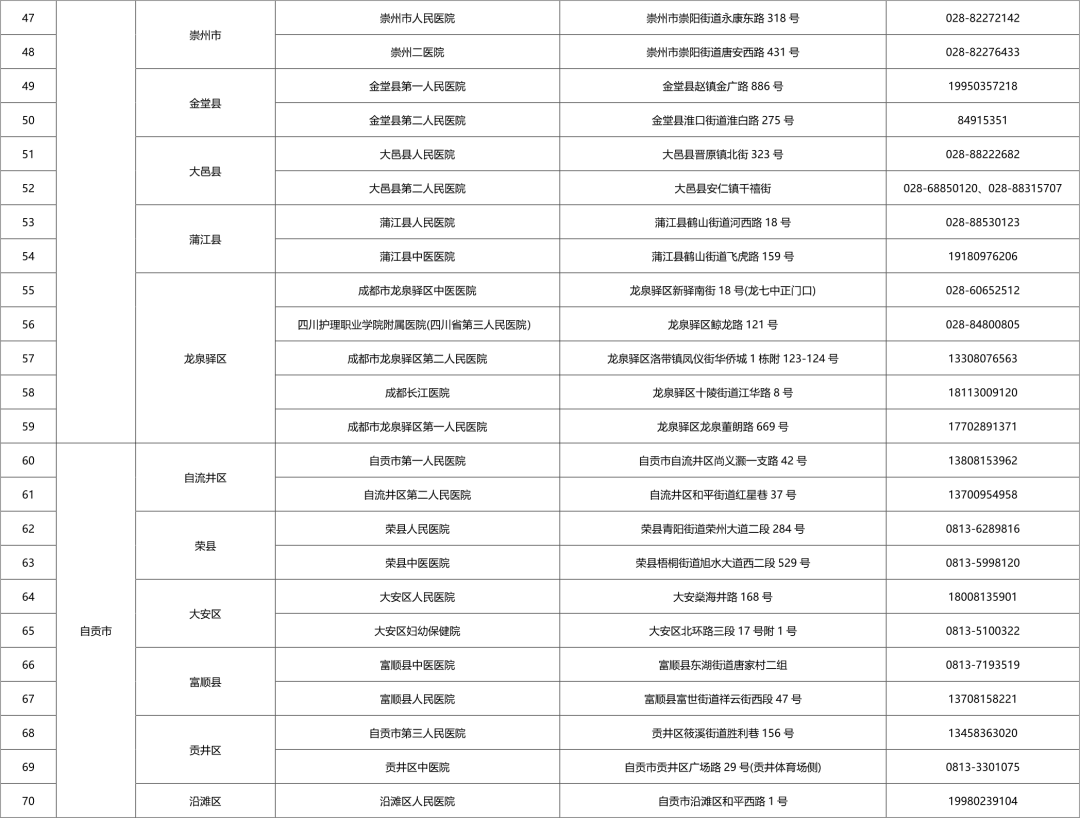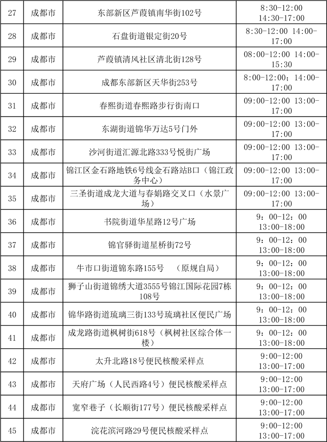 公众还可通过微信小程序“四川天府健康通”——热门服务——医疗防疫机构查询检测机构,或查看下方全省便民核酸采样点名单。