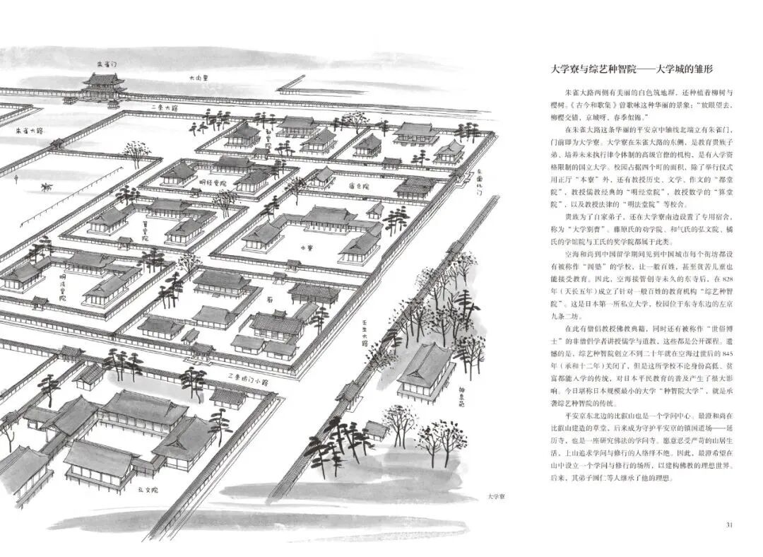 之后,陆续兴建镇护国家的东寺与西寺,庶民百姓交易流通的东市与西市,贵族与平民接受教育的大学寮与综艺种智院,城市文化迅速繁荣。