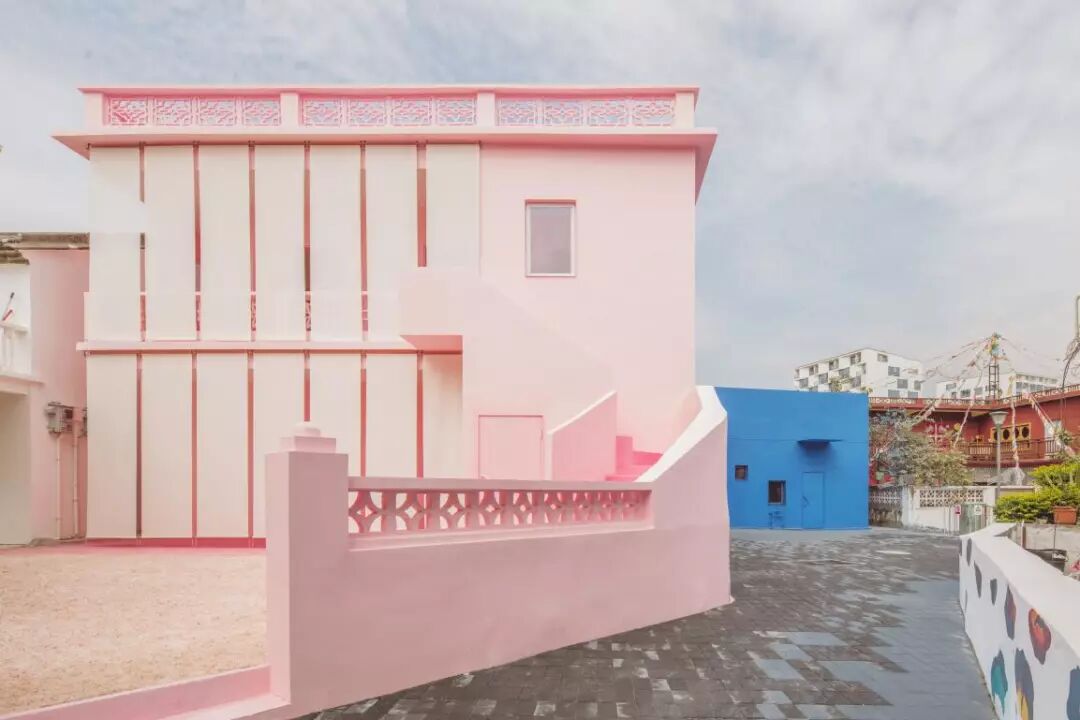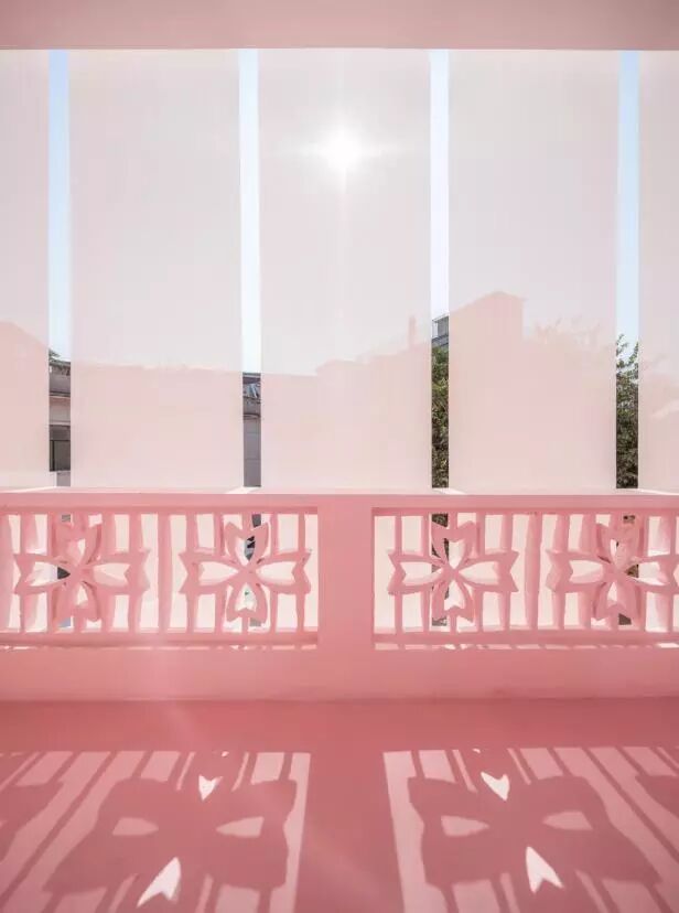 庭院里满铺粉红色的岩盐,是对枯山水的改写来为进入粉房子之前做一个暗示铺垫,说明即便在习以为常的破败城中村,设计师也可以做一个细微的动作就可以使得生活显得从容和雅致,这是存在的意义。