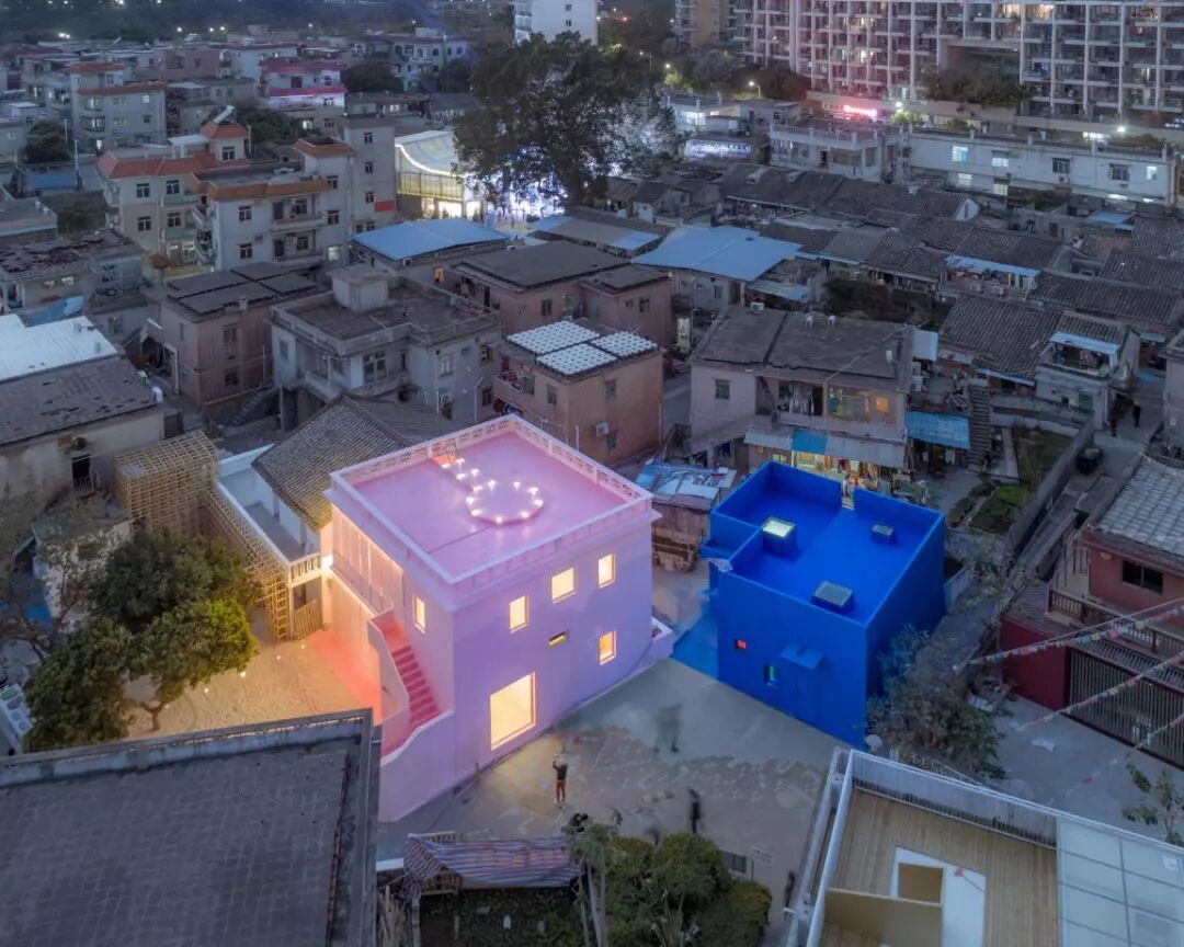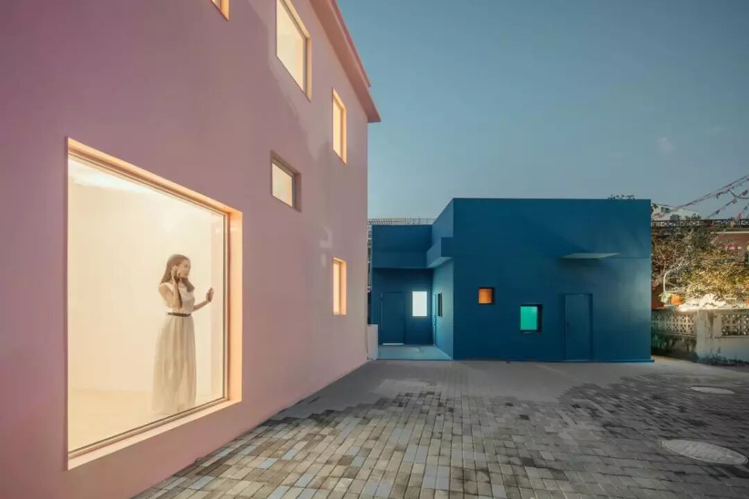 城中村居民包括租户最显著的特征就是直接,在经济大潮的冲刷下对一切欲望在表达上都毫无掩饰。我用颜色直白地表达这个特征。粉色和蓝色并不是凭空飞来的,它们在城中村里早就以保温材料,涂料和钢板屋顶之类的建筑材料上存在。俞挺的工作是提取,纯化然后极致地使用。建筑师摒弃所有当代形式符号提炼也尽可能减少自己常用的习惯,以色彩介入城中村,粉色代表女性,蓝色代表男性,继承了城中村毫无顾虑的勇气,但在立面和屋顶又用成熟的技术加以规整的梳理,展现建筑师不动声色的建筑化介入手法。