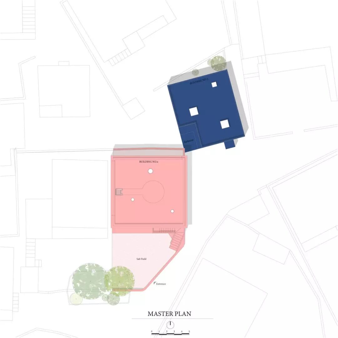 欲望之屋最后嘲讽是建筑学的老话题:地域性。当下所有脱离建筑的普遍建造技术比如制冷技术形成的同质化的地域性建筑都是伪地域建筑。文本中的地域性其实不存在。城中村展现是一种就地取材、拿来就用的生活态度。它没有任何历史包袱地、直接实用地、低成本地拼凑任何被其改写过的各种形式和技术,粗糙但生命力十足。当然建筑师最后还是考虑了地域性作为观念理解设计的导读,保留了5号楼的栏杆花式,还在4号楼的院子、5号楼的神圣空间用了盐作为装饰,这是盐田存在的源头,这样的厨房的存在解释上就合理了。