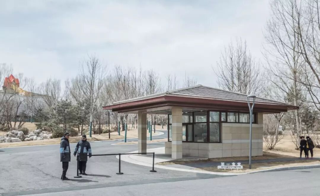 我倾向于在建筑立面上形成层层叠叠的空间来模糊建筑的气候边界。首先我把原来的门房剥成一个纯粹的半透明玻璃盒子,但和以往在气候边界前设定半透明的帷幕不同,这次我在玻璃盒子前设定了一道实体围墙作为建筑的领域间歇并围合玻璃盒子形成了一个半开放的院落。这道围墙不是所谓的附属设施,它和玻璃盒子以及院落一起成为游客中心的完整表达。但如果作为空间手段的尝试就到围墙此为止,倒也没太多可以谈的。那样,围墙就是明确的立面了。反而会掩盖我试图构建暧昧和多层次立面的企图。