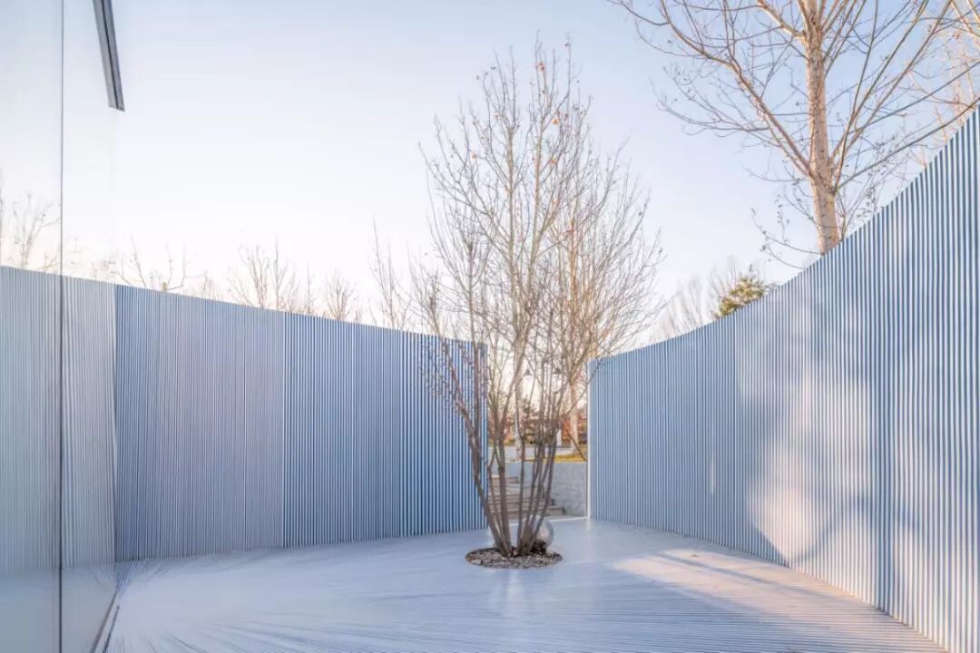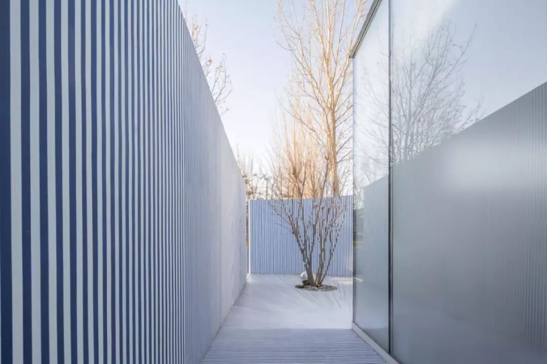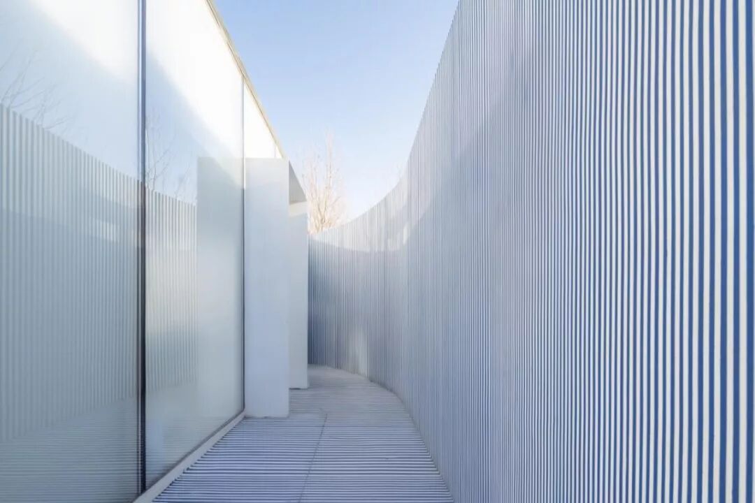 这个结果不是我想看到的,但我又着迷于围墙围合成的完型,也不愿意在半透明的玻璃盒子前再竖立一道半透明的围墙,海边风很大,无论阳光板还是穿孔铝板都需要很笨重的钢结构加以支撑来抗侧覆。