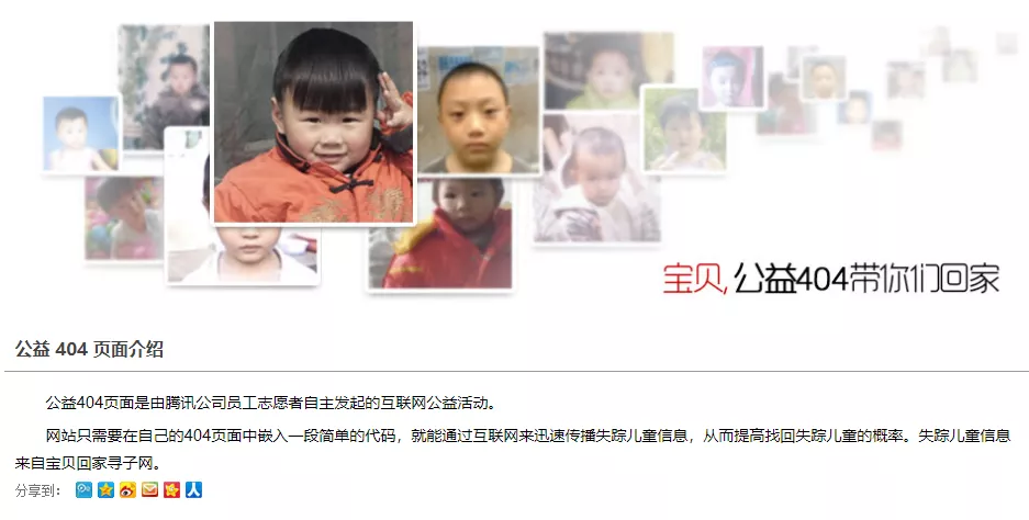 今天,来讲一个由腾讯公司员工志愿者自主发起的互联网公益活动:宝贝,公益 404 带你们回家。