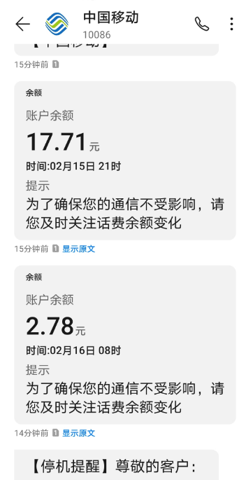 不过,很多用户不满的是,在流量不足时,运营商会不厌其烦地发信息提醒,但真等流量用完时,往往是扣了钱才会发来短信提醒。更有甚者,被扣费后直到停机才收到短信(不排除是技术原因)。