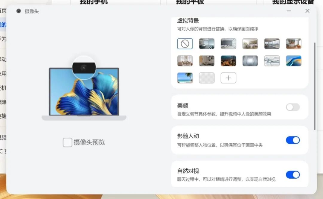 华为MateBook X Pro还支持乐享移动App功能,可以在华为电脑管家里打开移动App商城,下载安装原本只在移动端才能使用的App,不用翻看手机就能完成工作,提高了工作效率。 人工智能方面,考虑到MateBook X Pro的定位是商务办公,如果能更智能地协助工作展开自然就是锦上添花了,首先是AI慧眼功能,针对常态化的居家办公来说提供了人像自动抠图+虚拟背景的组合,而且这个组合是针对摄像头底层化的,视频软件会直接调取抠图后的图像数据,非常实用。