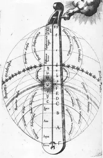 两千年后的德国天文学家,约翰·开普勒(Johannes Keple)是毕达哥拉斯思想的传承者与拓展者,他以当时已经发现的行星(土星,木星,火星,金星,地球)在轨道上运行速度变化的比例为依据,赋予每颗行星对应的音调,认为自己找到了传说中的“宇宙音乐”存在的证据。