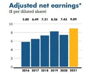 调整后每股收益达到近年来最高水平
