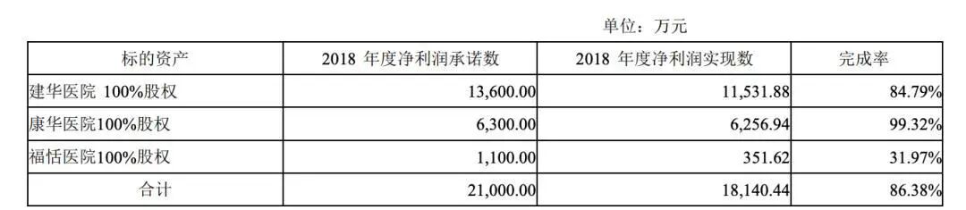 而根据年报建华医院,2016年业绩达标;2017年完成净利润为1.18亿元,差500万元;2018年完成业绩1.15亿元,差2100万,业绩突然变脸。