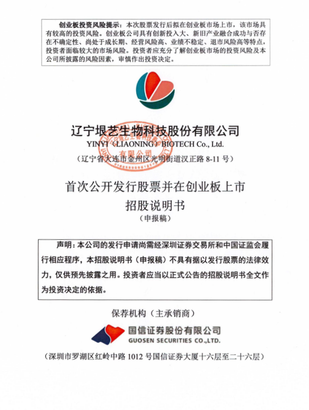 6月28日,辽宁垠艺生物科技股份有限公司(简称:垠艺生物)申请创业板IPO审核状态变更为“已受理”。保荐机构为国信证券股份有限公司;会计师事务所为致同会计师事务所(特殊普通合伙);律师事务所为北京德恒律师事务所。