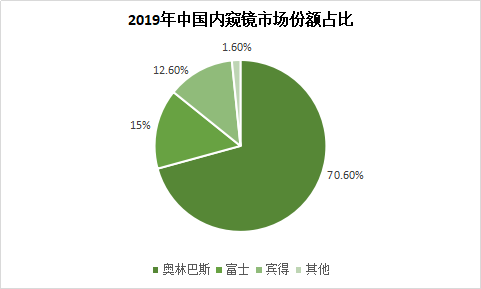 2020财年,奥林巴斯在中国区收入1030 亿日元,其中医疗业务 848亿元,占医疗业务总收入的 13.2%。而从中国内窥镜市场份额来看,《中国医疗器械行业发展报告》显示,2019年奥林巴斯占据了我国70.8%的市场份额。