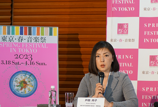 实行委员会事务局长芦田尚子为来宾们详细介绍了音乐祭的筹备情况。“东京·春·音乐祭2023”表现形式丰富,表现手法多元,嘉宾云集,群星璀璨,当代著名指挥家里卡多·穆蒂也会携《面具舞会》而来,为海内外观众献上精彩演出。