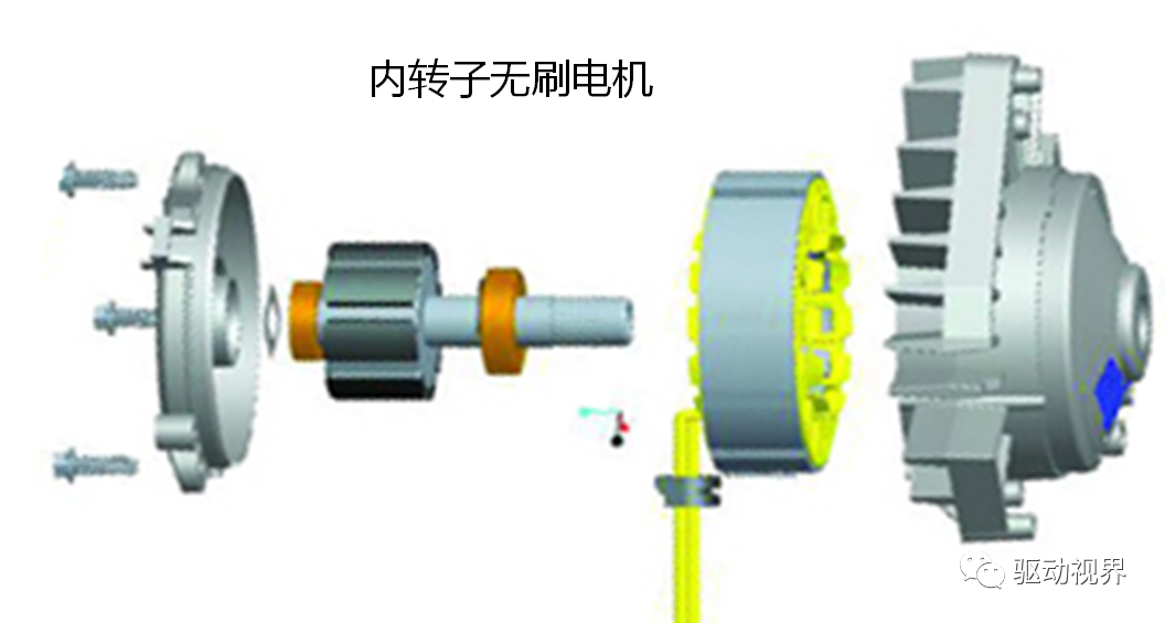 无刷电机在某些领域也称直流变频电机(BLDC),它采用电子换向(霍尔传感器),线圈(电枢)不动磁极动,此时永磁铁可以在线圈外部也可以在线圈内部,于是有了外转子无刷电机和内转子无刷电机之分。