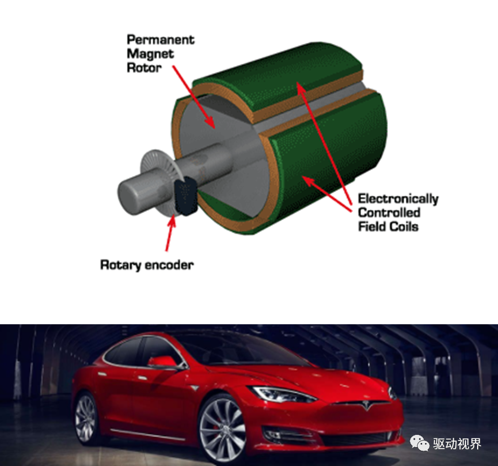 自控变频同步电动机在发展过程中曾经有多种名字,比如无换向器电机;当采用永磁体且输入三相正弦波时,可以称为正弦波永磁同步电动机;而如果输入方波,那么就可以称为梯形波永磁同步电动机,没错,这就是类似于之前说的的无刷直流机(BLDM),大家是不是感觉饶了个大圈有转回去了,但是你现在对于变频变速的理解一定更深一步了,所以无刷直流电机时采用直流输入,但是使用了同步电机的变频技术(结构与永磁同步电机相同),在Model3上就采用了直流无刷电机。