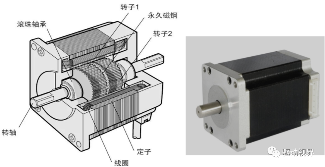 步进电机是一种感应电机,它的工作原理是利用电子电路,即驱动器,将直流电变成分时供电的多相时序控制电流。
