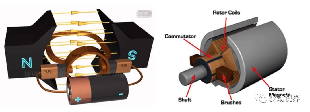 所有电机都是由定子和转子组成,在直流电机中,为了让转子转起来,需要不断改变电流方向,否则转子只能转半圈,这点就像自行车脚踏板。