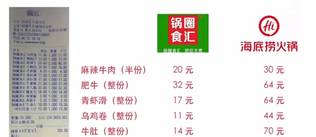 把海底捞和锅圈对比,锅圈的价格优势很明显。