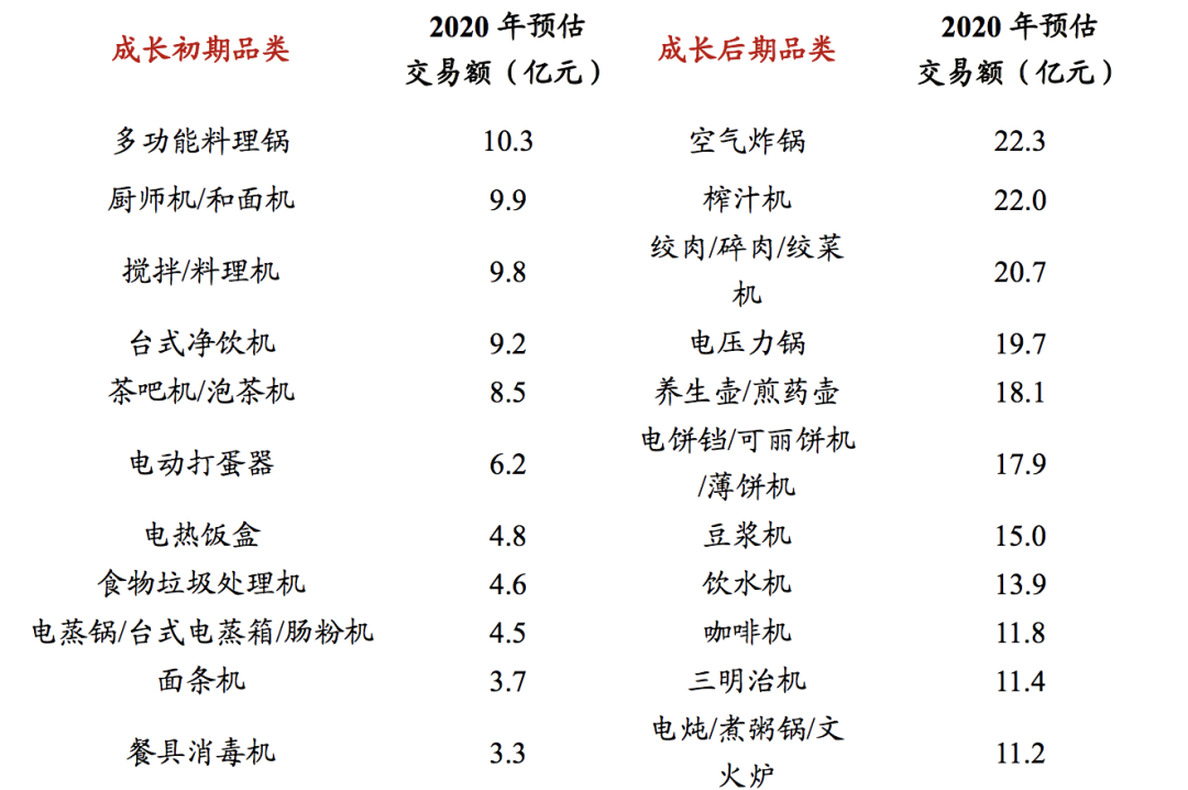 主打快捷的小家电市场年复合增长率达13%,其中的佼佼者小熊更是在第一季度保持17%的增长率。其中的空气炸锅、破壁机、电压力锅等,都达到了20亿到40亿不等的年预估交易额。
