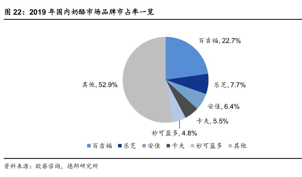 另一方面,奶酪在西方国家历史悠久,具有先天优势,新入者进入门槛高,头部乳制品如伊利蒙牛奶酪布局较晚,要想超越进口品牌还需要一些时间。