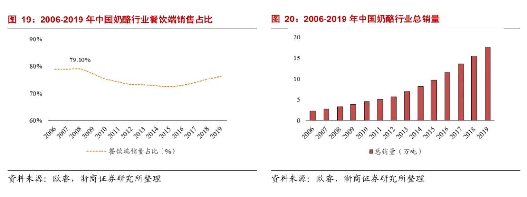 我国奶酪销售渠道主要是零售和餐饮两个方面,保持稳健增长。
