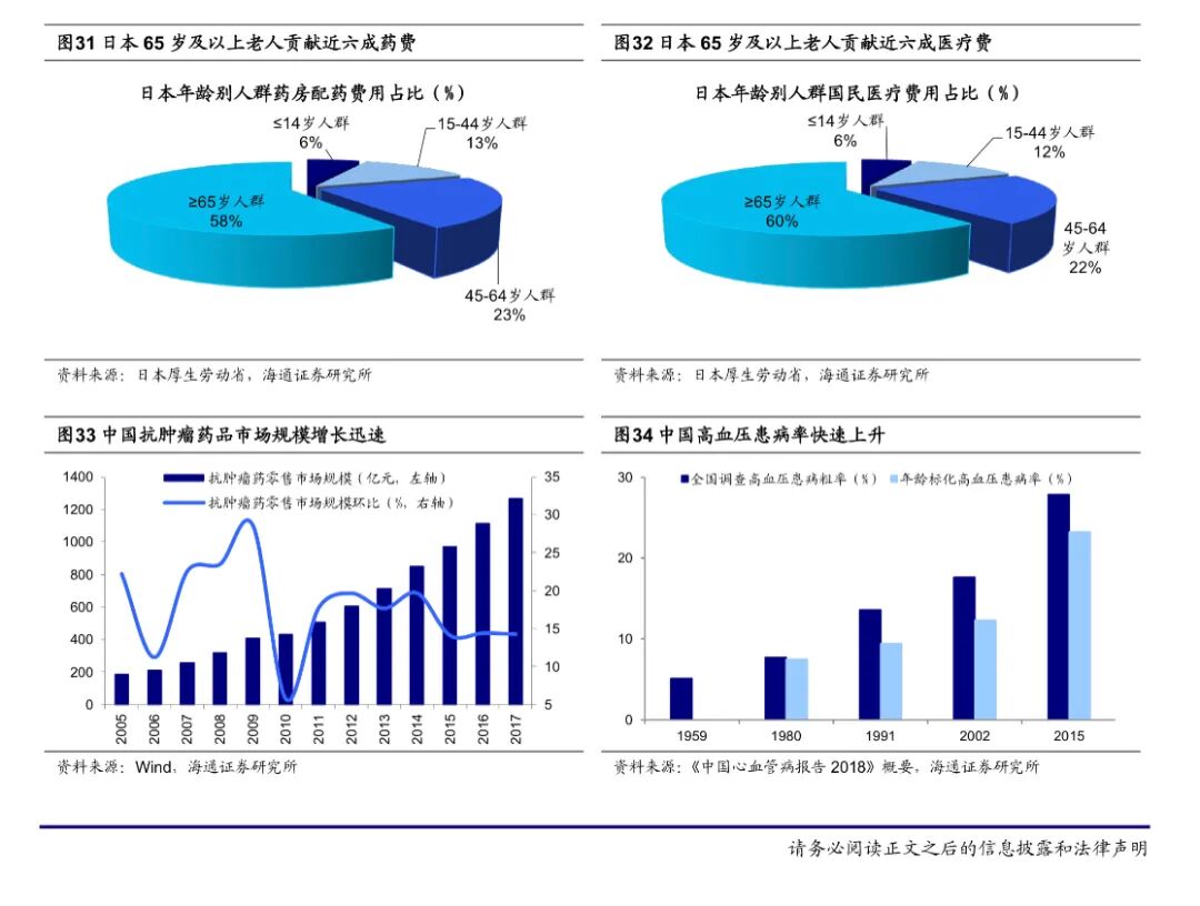 对标日本,随着中国老龄化进程的加快,老年人对医疗消费和药品消费需求必然上升,特别是心血管疾病、慢性病等。