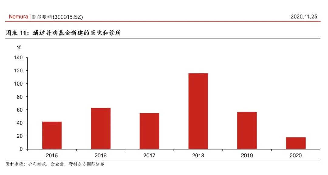 2015年以来,爱尔与收购基金合作每年建立/收购30多家地级市医院。