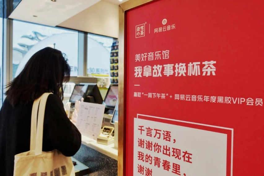 与网易云音乐联合推出了“AR小纸条”虚拟留言墙新玩法,推出了“美好音乐馆·我拿故事换杯茶”品牌创意互动活动,又让奈雪的茶在朋友圈再次爆火。
