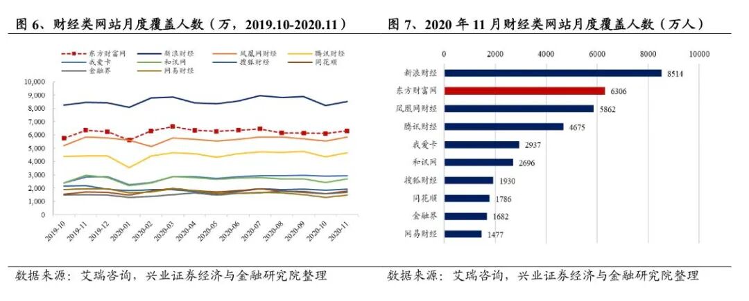 根据艾瑞数据显示,东方财富网在过去一年中(2019.10到2020.11)月覆盖人数在财经类网站里排名第二,仅次于新浪财经。