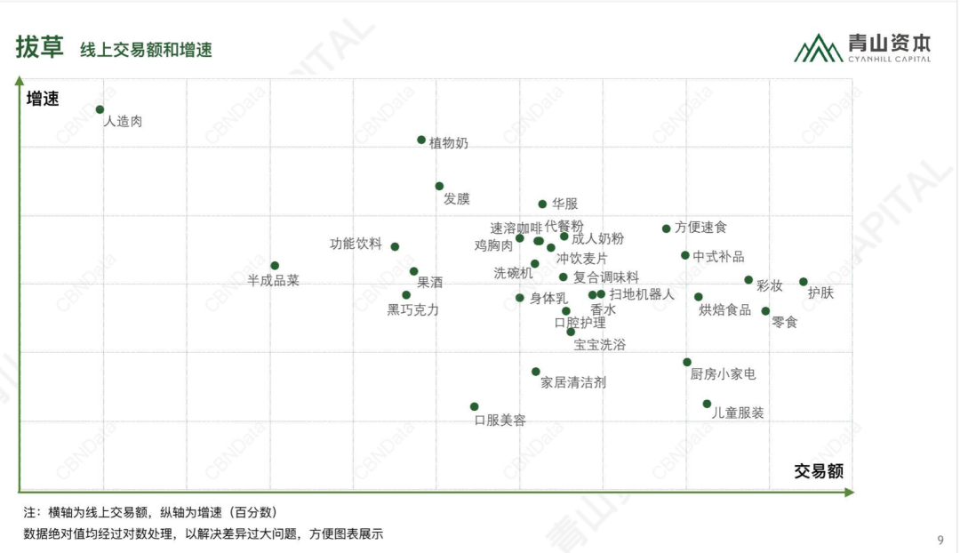 植物奶与口服美容差不多,虽然都属于“低种草,低拔草”型,但增速明显。