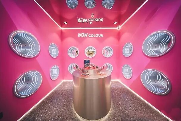“鲜视觉、鲜陈列、鲜体验”是WOW COLOUR门店的三大核心理念。通过光线、色彩、陈列,配合大面积LCD墙,凸显高端感,营造出潮流感。