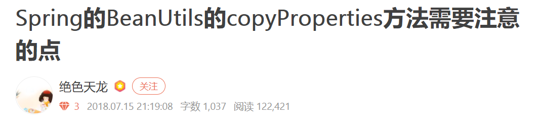 他这篇文章说的是关于使用 Spring 的 BeanUtils 的 copyProperties 方法的时候遇到的一个需要注意的点。具体是个啥需要注意的点呢,我简单的转述一下。