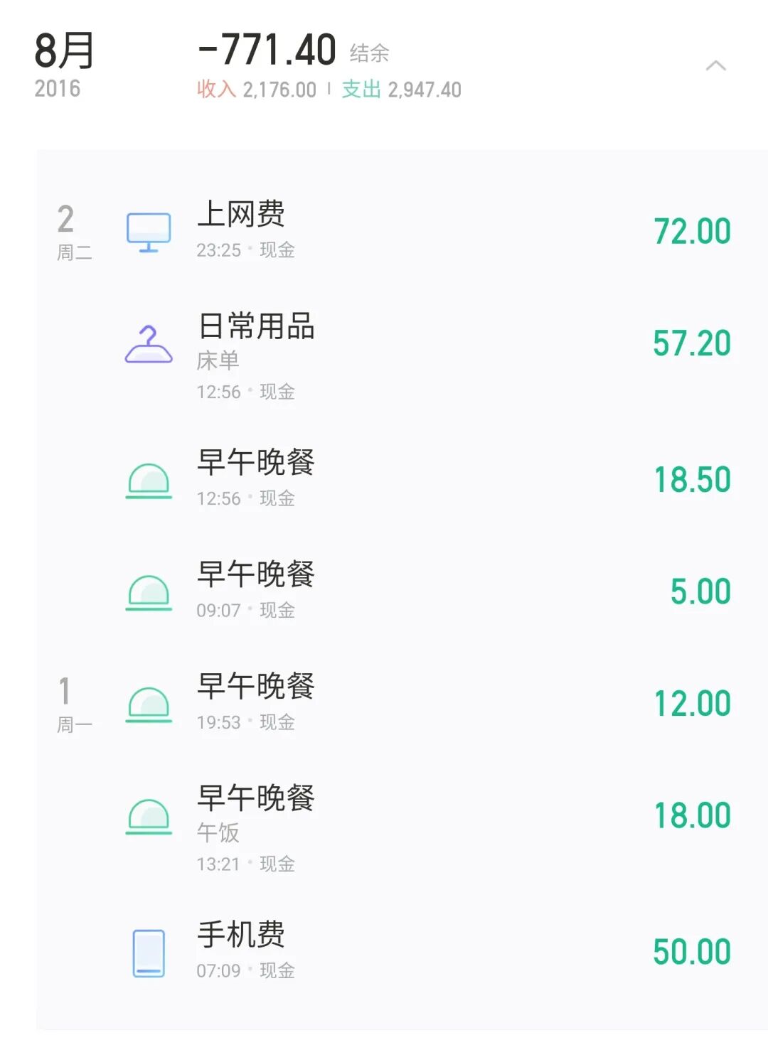 我翻看了很多很多的记账记录,每一笔账我都记录了下来,甚至包括一根一块钱的雪糕。