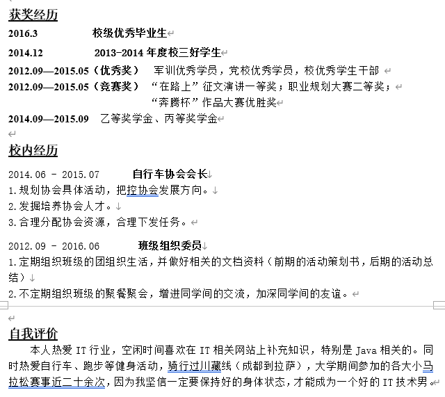 给大家看一下,我当年的简历中的一部分内容,真的,看的我尴尬癌都快犯了: