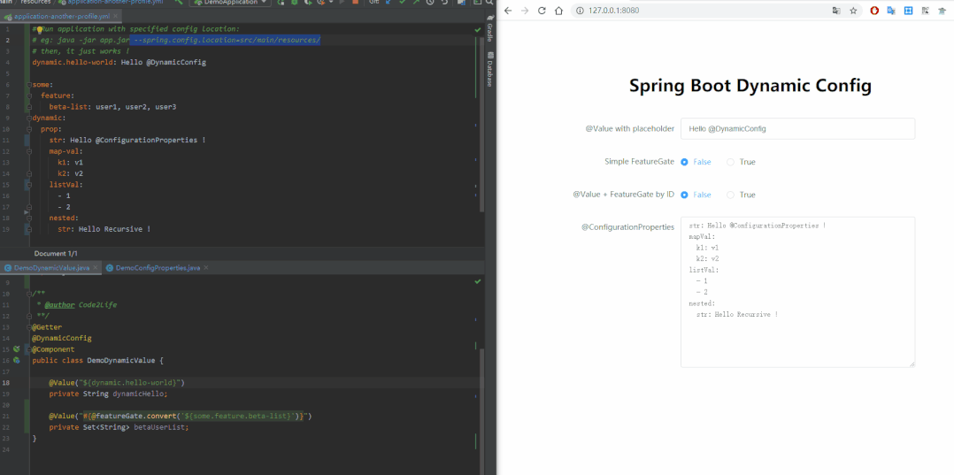 这个库的使用方式极其简单:只要在注有@Value/@ConfigurationProperties的类上,加上@DynamicConfig注解即可。