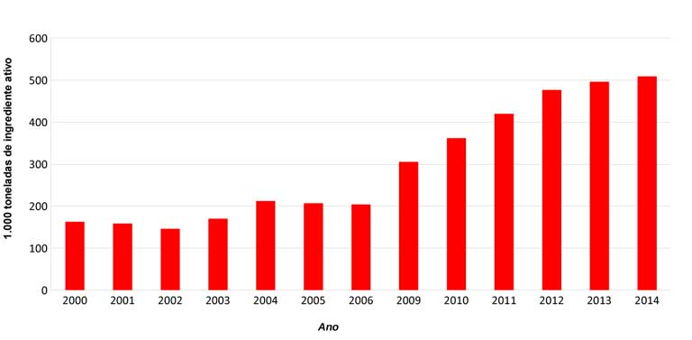随着大豆产量的提高,草甘膦用量在该国也得到迅猛增长,2000年至2010年间增加了两倍多,从3.95万吨增至12.76万吨。