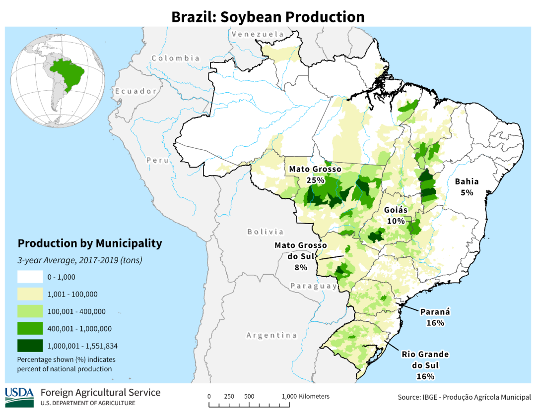 研究人员引述美国农业部(USDA)的数据表明,自2004年,转基因大豆在巴西迅速蔓延,到2015年左右,已占粮食种植面积的93%。