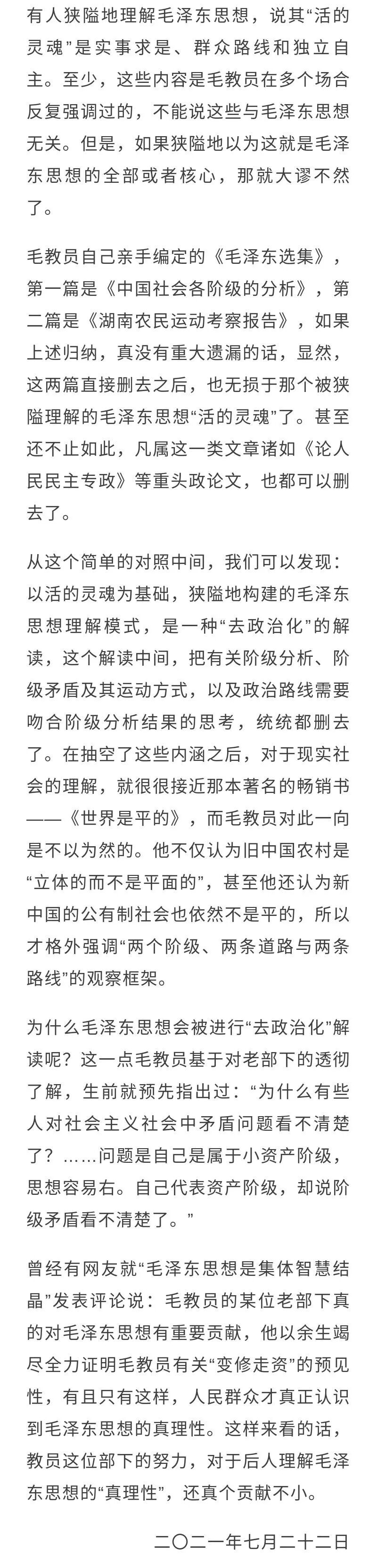 但是,要准确理解毛泽东思想,还得回顾革命导师们的思考系列,毛教员自己的核心思考是处在这个系列之中而非之外。