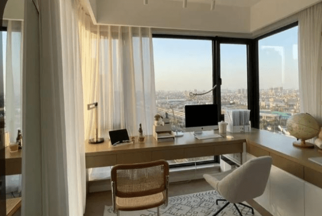 在窗边放一张安静的桌子,看着窗外的美景,舒适而美丽。
