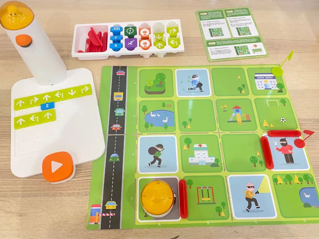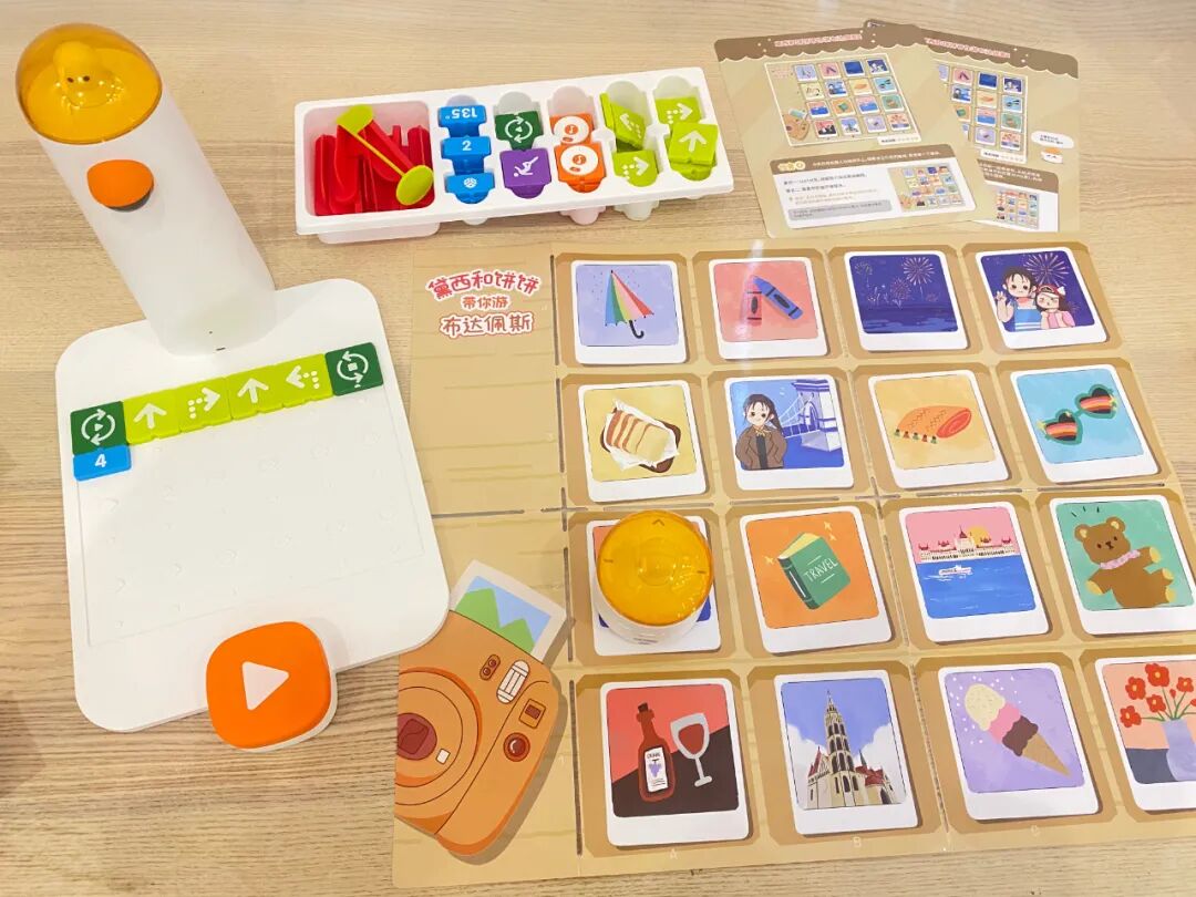 不过啊,别被这些现成的玩法限制了思路,完全可以结合地图,和其他开放式玩具搭配玩:很多编程玩具几乎没有拓展的可能性,娃玩几个月就“超龄”了。