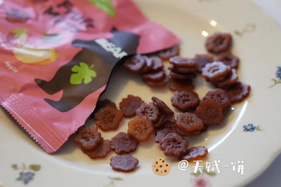 苹果味水果卷,只有三种配料,苹果,梨(两个占了99.9%),外加钝顶螺旋藻粉(0.1%),无他。