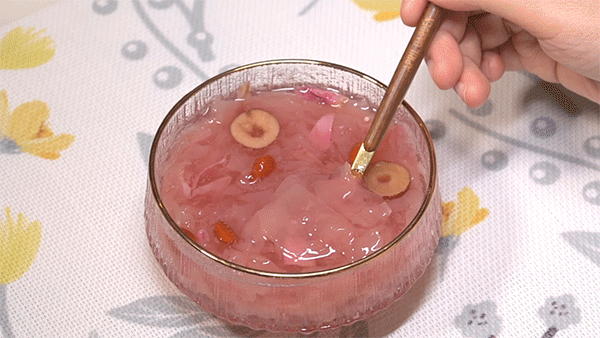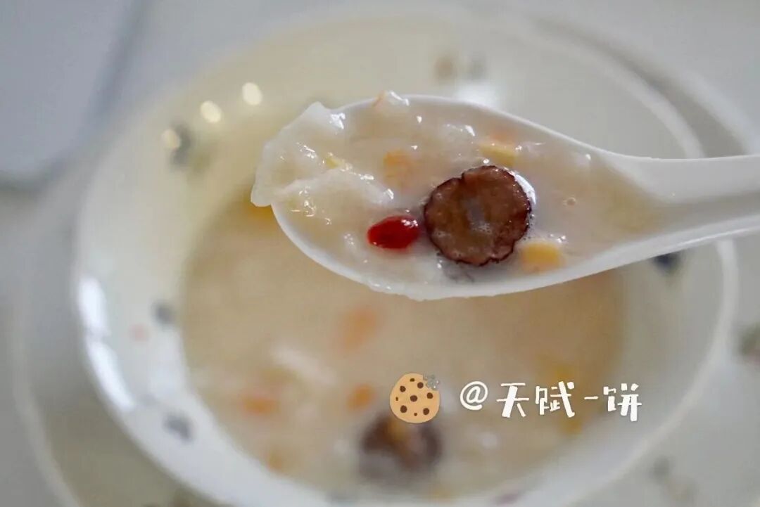 口感软糯爽滑,羹浓稠富含胶质,红枣枸杞等等辅料啥的也都在里面了,特别方便。