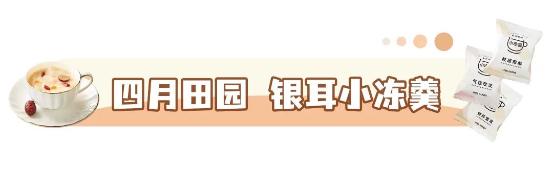 四月田园的创始人对产品很有死磕精神,从原料到工艺,啥都用好的,用料特别实在,不是用噱头套路用户。以前我妈来德国的时候,每次都会塞好几大袋干银耳在行李箱里,她说德国亚超的银耳不行,不如国内的银耳好。古田是中国“银耳之乡”,那里产的银耳朵型大,肉头厚,胶质多,浇灌用的是当地天然山泉水,种植过程不打农药,产量只占产区5%的古田有机新鲜银耳,可以说是“金字塔尖儿的银耳”。从古田有机培植基地采摘银耳,经过冷链运输,去根蒂,反复清洗,精细切割(为了更好出胶),只保留银耳叶瓣熬煮,然后入冻干炉脱水制作成银耳小冻羹——这一通操作要在24小时内完成。银耳小冻羹用的冻干技术,原理是把含有大量水分的产品,在超低温的真空环境里速冻,让食物中的水分直接升华为气态,脱水干燥。和高温烘干不同的是,冻干只带走水分,不带走营养,所以银耳和辅料的的营养、味道、口感、形态可以被最大程度保留。沸水浇上去,搅拌一下,静置一会儿,用勺子捞一捞,就可以看到粘稠的银耳胶质,放置时间越久,胶质越丰富浓稠。当早餐可以一次泡两袋,汤羹的口感就更饱满了,就像用小火盖着锅盖炖的银耳羹差不多。脱水后的银耳不压秤,每块银耳小冻羹净重只有15g,其实是用40g新鲜银耳脱水制成的。沸水一冲,等5分钟,它就会慢慢舒展膨胀成一碗含40g新鲜银耳的羹。平时咱们煮银耳要放的枸杞红枣冰糖,银耳小冻羹里都有了,开水一浇,完事儿。四月田园有三种不同口味的银耳小冻羹,里面都有枸杞红枣,每一个口味还加了不同的辅料。纤纤雪耳口味的辅料是奇亚籽(黑色点点,一种膳食纤维)——![]()