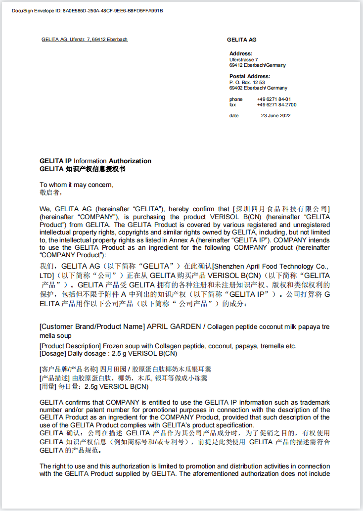 胶原蛋白肽的供应商是德国百年健康食品巨头嘉利达GELITA,全球胶原蛋白肽领域的“隐形冠军”。品牌方告诉我,目前为止,国内只有四月田园一家获得了德国嘉利达的专利授权。很多国际一线的专业营养品,比如澳洲Swi*se,德国高端保健品Orth*mal等,用的都是嘉利达的胶原蛋白肽。嘉利达提供的试验数据显示,每天摄入2500mg胶原蛋白肽,可以提升皮肤弹性。每块胶原椰椰银耳小冻羹里有1250mg胶原蛋白肽,也就是说每天两块就能补充2500mg,改善皮肤状态。▼ 早餐冲了两份的量
