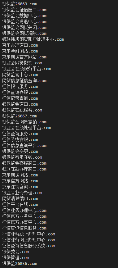在此,我们也从无糖自研的“大狗-涉诈线索发现溯源反制打击平台”侦测到的涉诈线索中,整理和发布了近一个月以来用于此类诈骗的中文com域名清单(400余条),方便各地相关部门和单位进行封堵处理。