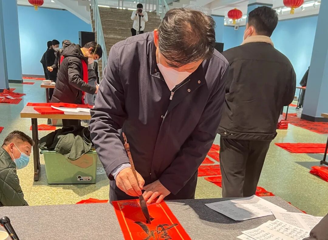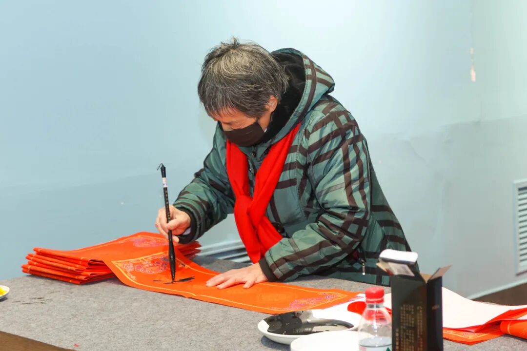 “手写的春联就是不一样!香!街上卖的烫金春联,虽印刷精美,但闻不到一点墨香。这春联写得太好了!真不愧是艺术家。”在场的群众纷纷夸赞着。