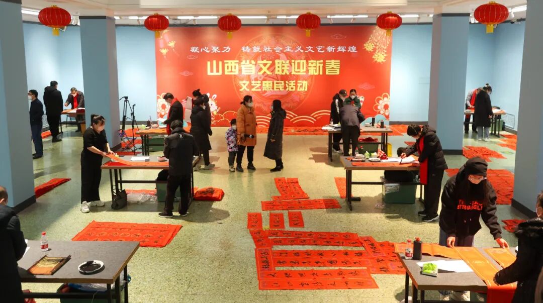 据悉,这次系列文化惠民活动共有8项内容,其余7项是,“进门赠福”活动,组织十余位书法家在省文联大厅书写福字,为观看展览和路过的广大群众免费赠送福字和春联;“上门送福”活动,在省文联开展的慰问活动中,为老同志们上门送福送春联;“廉语清风贺新春”活动,把清廉文化送进机关、企业、学校、乡村(社区)、家庭,把廉政文化延伸到每个角落,推动形成良好的社会风气,为深入推进清廉山西建设贡献文艺力量;新春走基层活动,组织省级书法家小分队深入省文联扶贫点、新时代文明实践中心、艺术创作实践基地、村级文联、消防文联、社区等开展写春联、送春联活动;公益联动惠民活动,与各市文联联合举办文化惠民公益活动,进一步扩大公益服务覆盖面,形成公益服务合力,把新年的喜气带给当地群众;“镜头里的年味”主题图片展活动,通过摄影作品再现十八大以来群众生活中方方面面的“年味”,包括城市风貌、最美乡村、地方民俗、最美守护、民族团结、和谐家庭等内容;线上曲艺方言拜年活动,组织我省知名曲艺家通过短视频的形式,用大同数来宝、太原莲花落等多种曲艺形式线上乡音拜年,为山西父老乡亲送上新春的祝福。