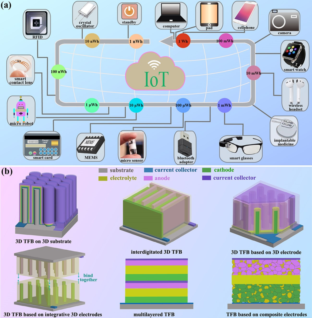随着世界步入物联网(IoT)时代,许多微型电子设备需要自主供电。全固态薄膜锂/锂离子微电池(TFBs)被认为是物联网微电子设备的理想电源。然而,与已经商业化的锂离子电池相比,TFBs仍不成熟,迫切需要在材料、制造和结构方面取得新的进步来提高其性能。因此,作为适合物联网设备的电源,下一代TFBs的设计应考虑多种因素,包括较宽的工作温度、良好的韧性,以及与能量采集系统的集成,促进物联网电源的发展。